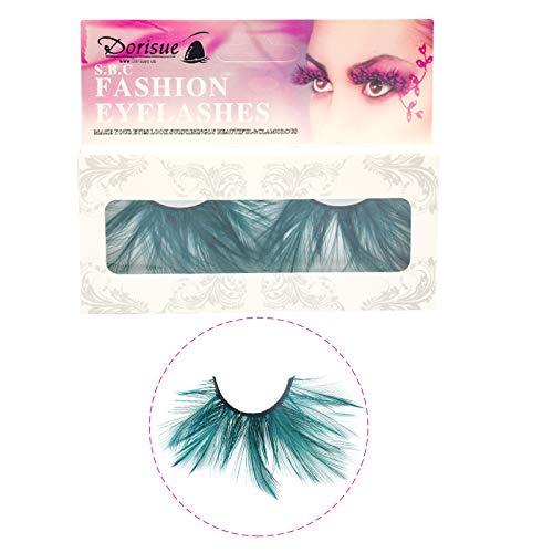 Dorisue Halloween Eyelashes Double Lip Black With Green Big Extra Long Feather Eyelashes Extra Extension Halloween Green Feather Tip False Eyelashes Dance Halloween Costume